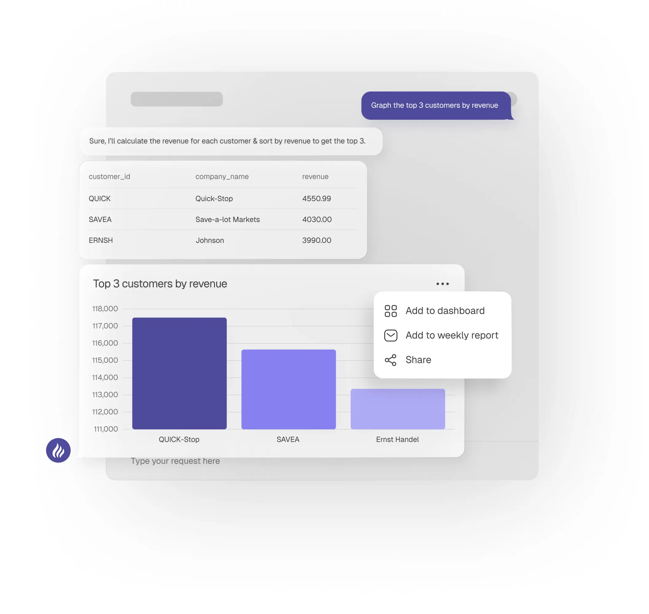 Turn questions into data insights, with SQL AI.